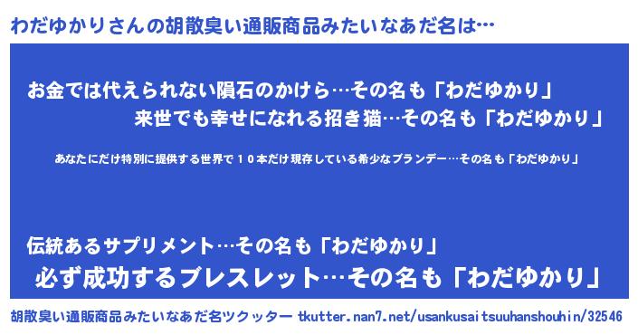 | 意味不明あだ名 | 『住所不定無職わだゆかり(93歳)』 |