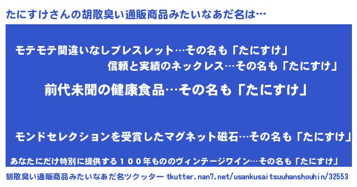 | 意味不明あだ名 | 『永久保存たにすけ』『ペロリンたにすけ』 |