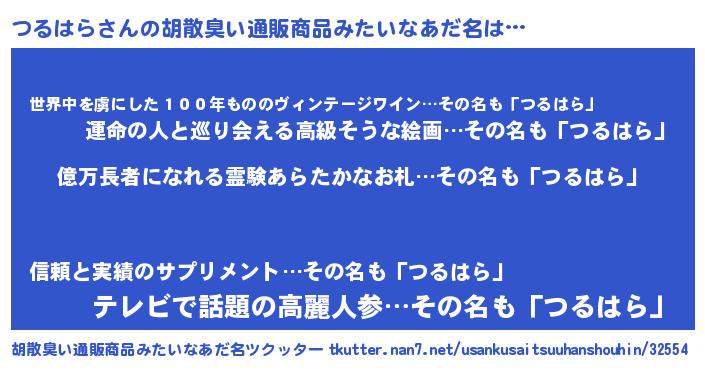 | ヘコむあだ名 | 『つるもー』『なまこ酢』『つるを』 |