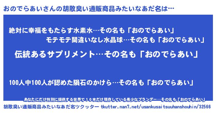 | 欧米人風あだ名 | 『トリンドルおのでらあい』 |