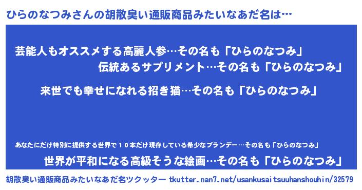 | 意味不明あだ名 | 『永久保存ひらのなつみ』 |