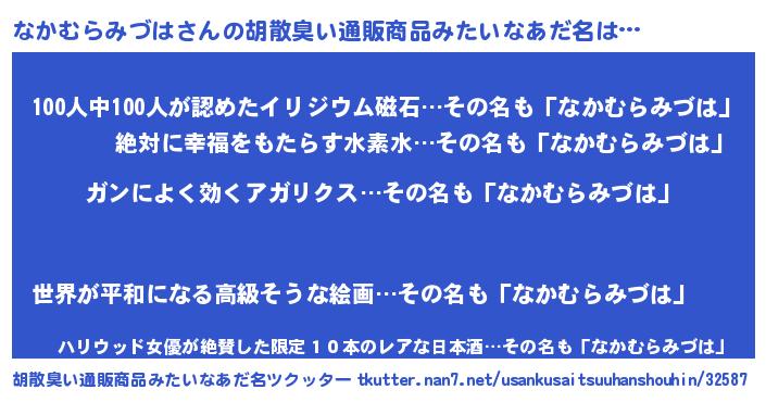 | 意味不明あだ名 | 『自称なかむらみづは』 |