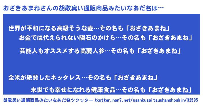 | 意味不明あだ名 | 『ニラ科おざきあまね属』 |