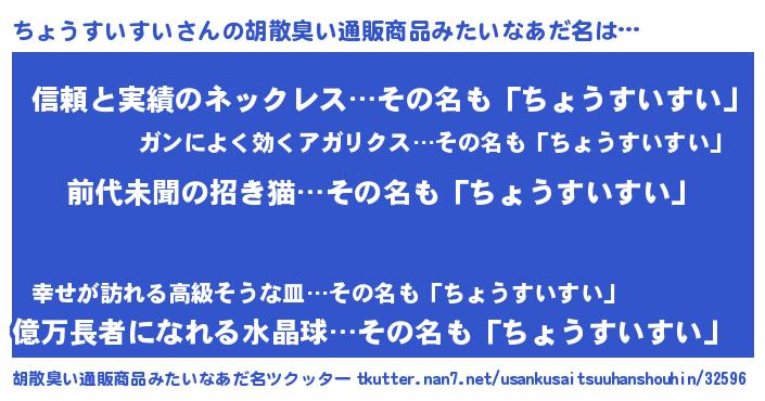 | ヘコむあだ名 | 『ちょうすいすい(小並感)』『ちょっぺ』 |