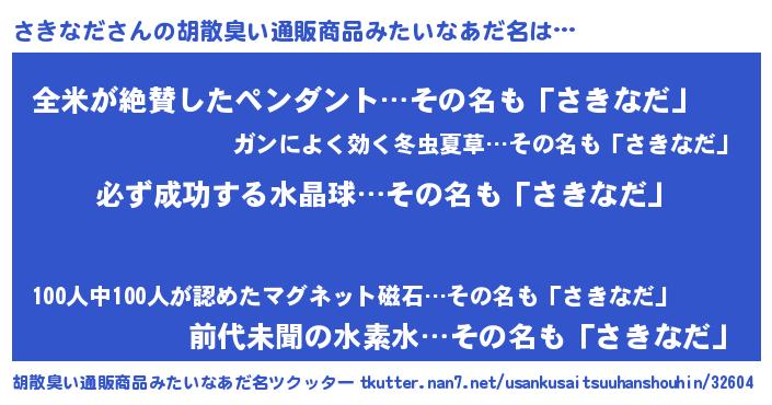 | 男性向けラノベタイトル風あだ名 | 『さきなだの憂鬱』『緋弾のサキナダ』 |
