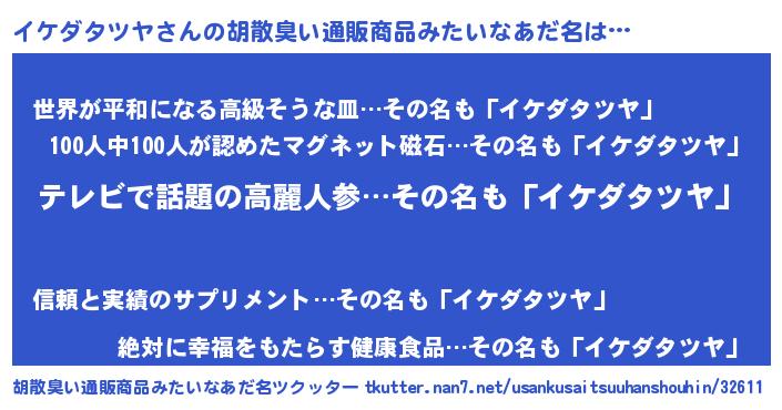 | 肩書あだ名 | 『イケダタツヤ閣下』『イケダタツヤ大将』 |