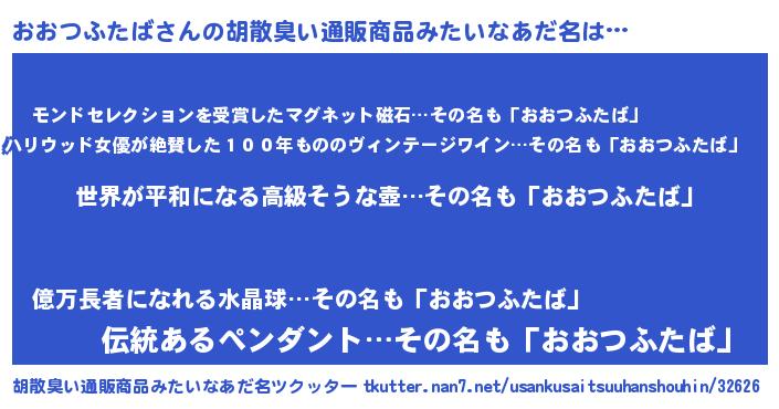 | 意味不明あだ名 | 『おおつふたばフォーエバー』 |