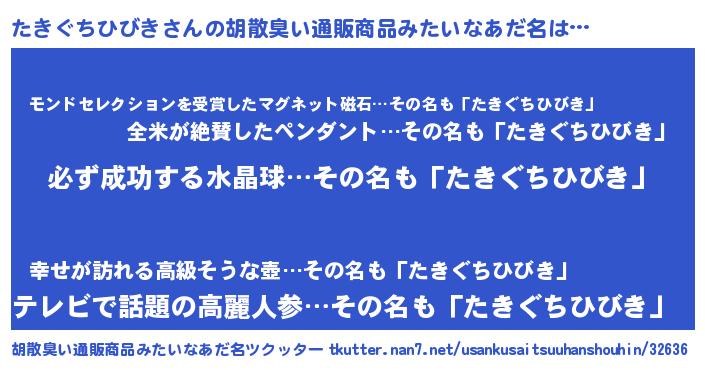 たきぐちひびきさんの胡散臭い通販商品みたいなあだ名をツクッター!