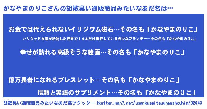 | 意味不明あだ名 | 『かなやまのりこフォーエバー』 |