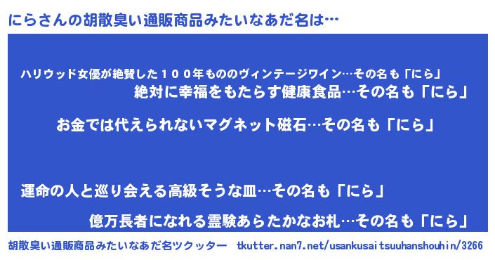 にらさんの胡散臭い通販商品みたいなあだ名をツクッター!