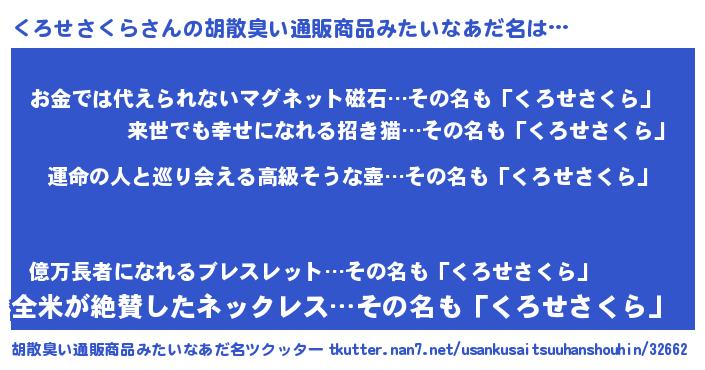| 意味不明あだ名 | 『くろせさくらフォーエバー』 |