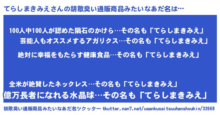 てらしまきみえさんの胡散臭い通販商品みたいなあだ名をツクッター!
