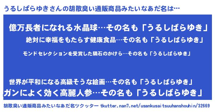 ヘコむあだ名 | 『うるもー』『うるしばらゆき(爆)』 |