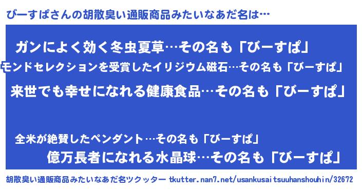 ヘコむあだ名 | 『びーすぱ(笑)』『びーにー』 |