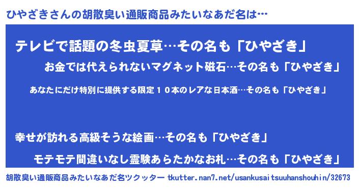 | ヒーロー風カッコイイあだ名 | 『仮面ヒヤダー』『サイバー戦士ヒヤザキ』 |
