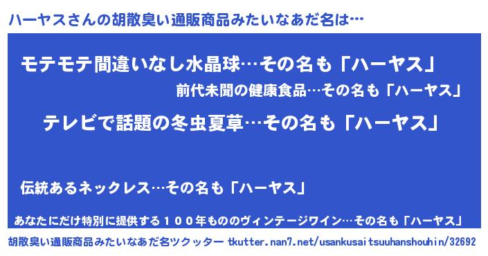 | ヘコむあだ名 | 『ハーもー』『ハーヤス(苦笑)』 |