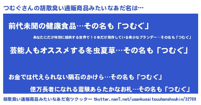 | 意味不明あだ名 | 『自称つむぐ』『永久保存つむぐ』 |