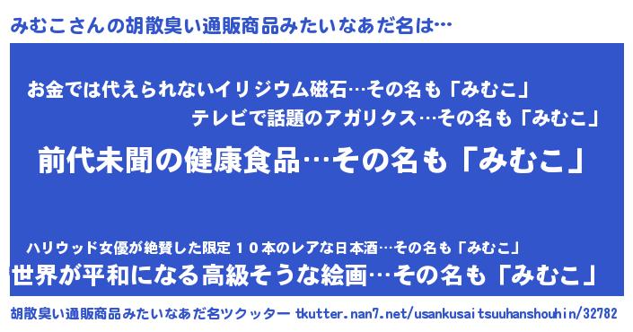 | 意味不明あだ名 | 『永久保存みむこ』『みむこフォーエバー』 |