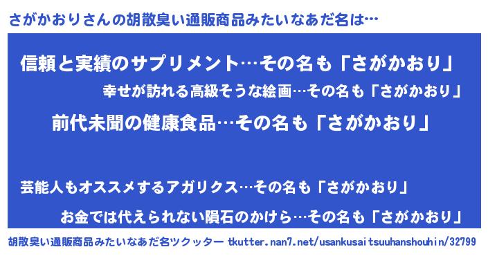 | 意味不明あだ名 | 『永久保存さがかおり』 |