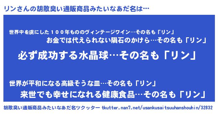 | ヘコむあだ名 | 『リンにゅー』『リン(小並感)』 |