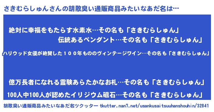 | 伝説のあだ名 | 『聞きしに勝る吟遊詩人さきむらしゅん』 |