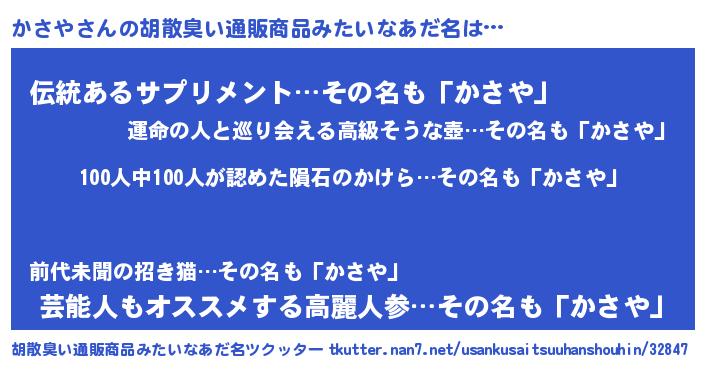 | ヒーロー風カッコイイあだ名 | 『正義の使者かさや』『幻影騎士カサ』 |