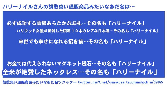 | ヘコむあだ名 | 『ハリーナイル(笑)』『ハリもー』 |