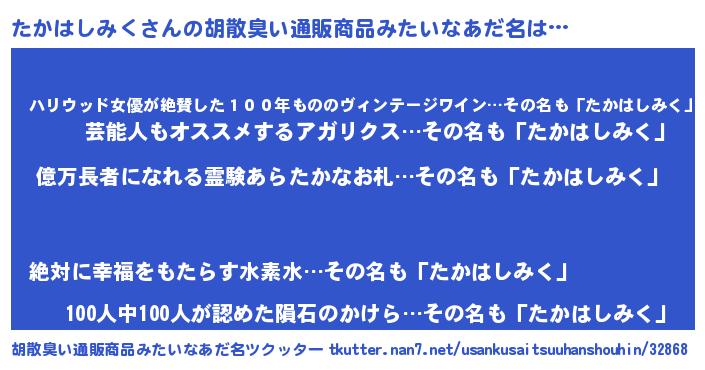 | ヘコむあだ名 | 『たかっふぃ~』『たかはしみく(笑)』 |