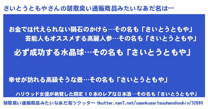 | 肩書あだ名 | 『さいとうともや店長』 |