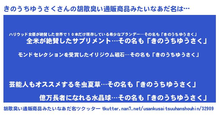 | 男性向けラノベタイトル風あだ名 | 『きのうちゆうさくに滅ぼされるだけの簡単なお仕事です』 |