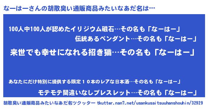 | ヒーロー風カッコイイあだ名 | 『ネオナーハー』『慈愛の使者なーはー』 |