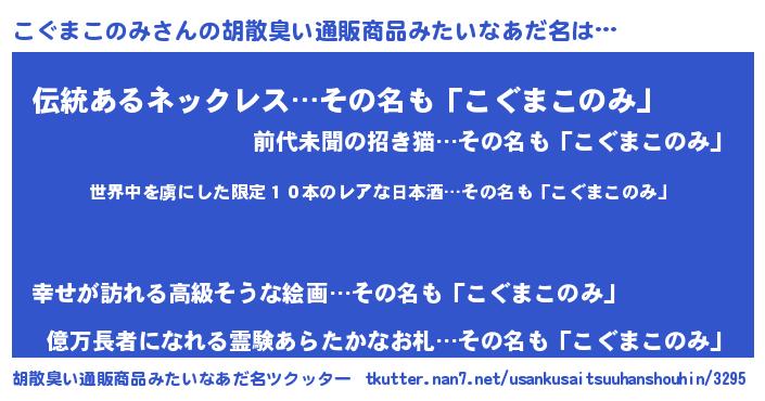 | 男性向けラノベタイトル風あだ名 | 『転生したらこぐまこのみだった件』 |