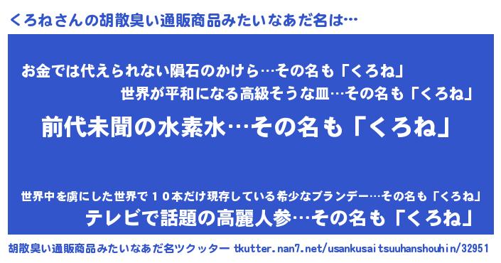 | 欧米人風あだ名 | 『ダルビッシュくろね』『ダニエルくろね』 |