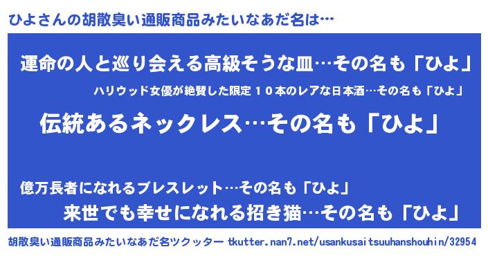 | 意味不明あだ名 | 『なめこ科ひよ属』『とにかく怪しいひよ』 |