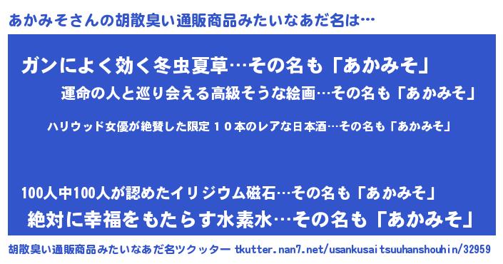| 意味不明あだ名 | 『住所不定無職あかみそ(56歳)』 |