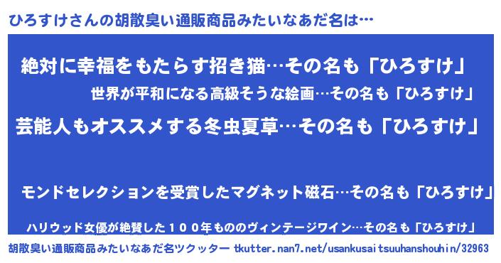 | 意味不明あだ名 | 『自称ひろすけ』『永久保存ひろすけ』 |