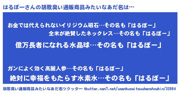 | 男性向けラノベタイトル風あだ名 | 『ハルボーアートオンライン』 |