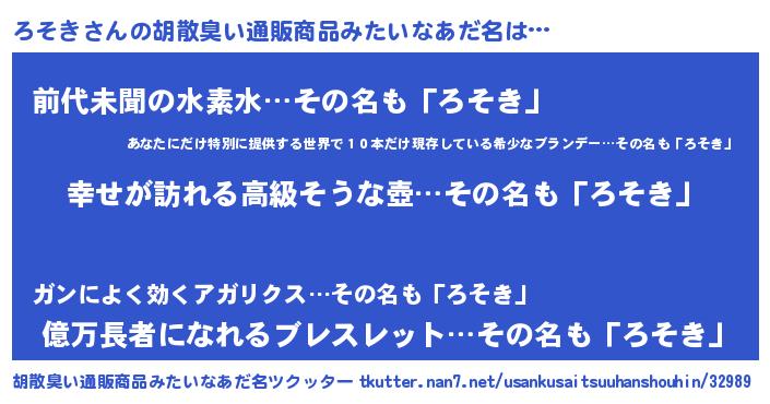| ヒーロー風カッコイイあだ名 | 『ウルトラろそきマン』『ネオロソキ』 |