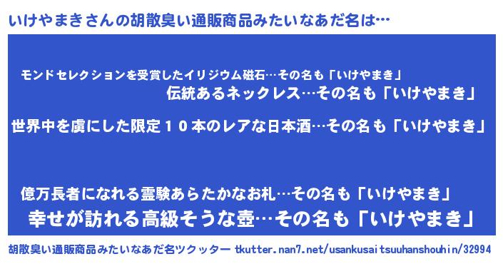 | 意味不明あだ名 | 『住所不定無職いけやまき(50歳)』 |