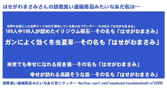 | 肩書あだ名 | 『はせがわまさみ総統』 |