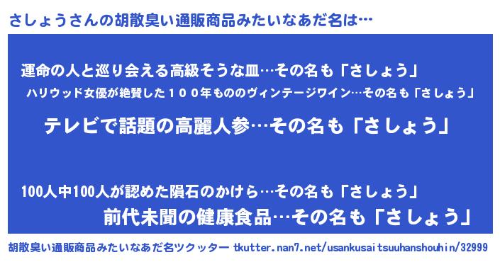 | 男性向けラノベタイトル風あだ名 | 『Re:さしょうから始める異世界生活』 |
