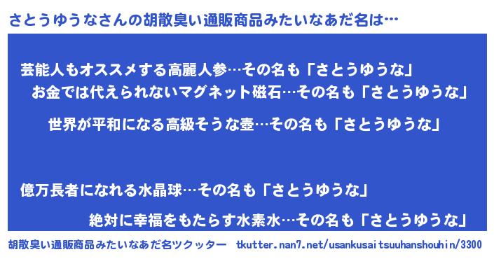 | ファンタジー風あだ名 | 『エターナルサトウユウナー』 |