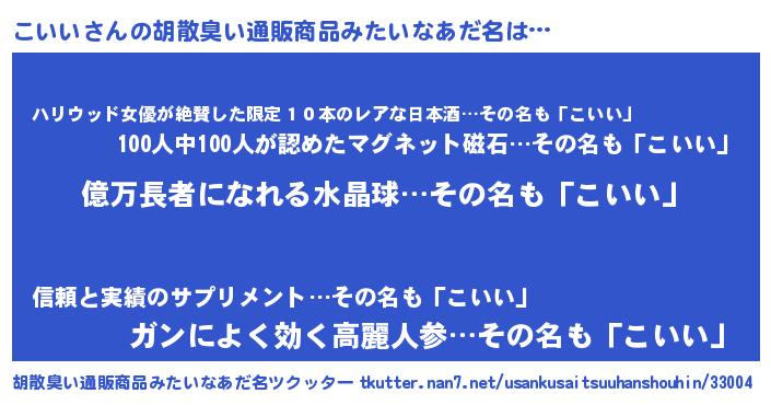 | 欧米人風あだ名 | 『マイケルこいい』『ダレノガレこいい』 |
