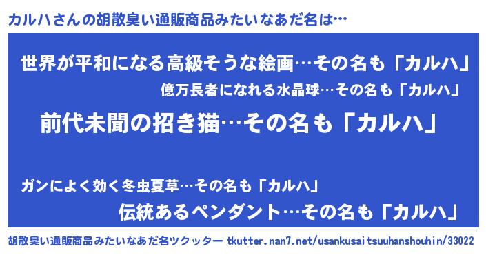 | ヒーロー風カッコイイあだ名 | 『ネオカルハ』『ウルトラカルハマン』 |