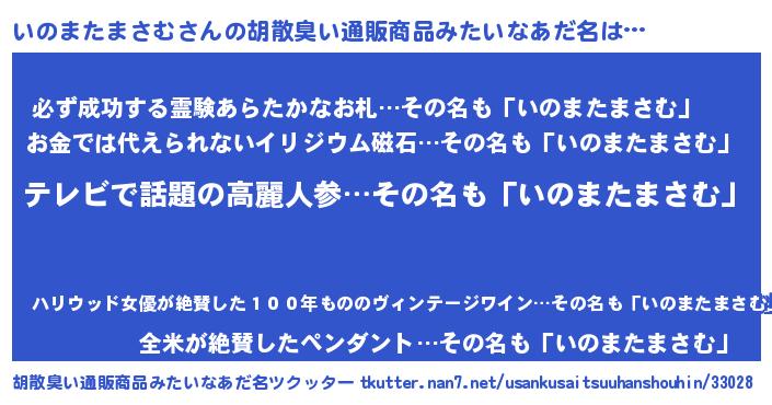 | 意味不明あだ名 | 『自称いのまたまさむ』 |