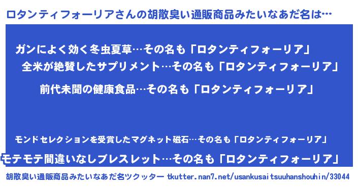 | ヘコむあだ名 | 『ロタンティフォーリア(苦笑)』『なまこ酢』 |