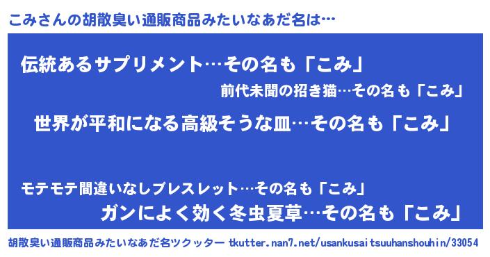 | ヘコむあだ名 | 『豆乳』『こみ太郎』『こみ(小並感)』 |