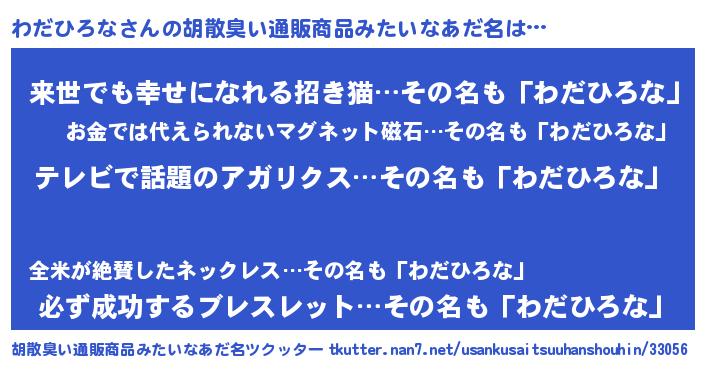 | ヘコむあだ名 | 『わだひろな(爆)』『わだにゅー』 |