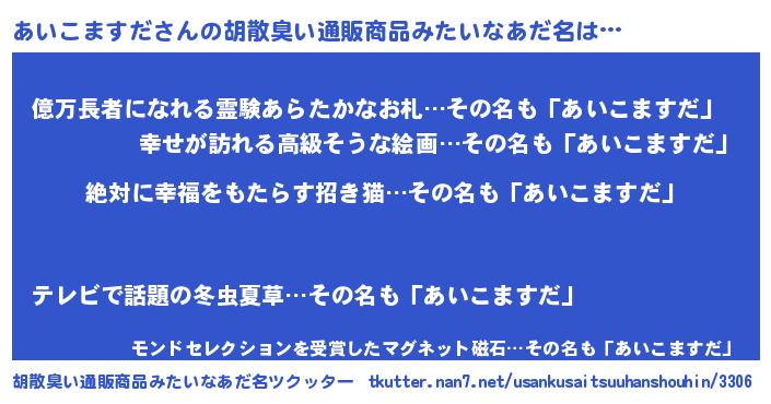 | 意味不明あだ名 | 『永久保存あいこますだ』 |