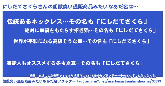 | ファンタジー風あだ名 | 『エターナルニシダテサクラー』 |